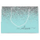 Aqua Blue - Teal and Silver Gnistra Glitter Script Monogram Namn Gift Bag Bag. Det gör perfekten söt 16-årsjubileum, bröllop, möhippa, årsdag, babydusch eller presentsäck för bachelorette till någon som glam lyxur och chic stilar.