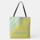 Aqua Chartreuse Trendig Dots Girly Namn Monogram Tygkasse