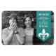Modern och elegant Chic Flourish Banner Photo Spara datum magneter med en pilbanderoll i turkos med en enkel loppur de lis-ornament. Spara datum magneter är en perfekt för att tillkännage ert kommande bröllop. Enkel att anpassa, lägg bara till din egen foto- och bröllop-information. Klicka på Anpassa om du vill söka efter ytterligare anpassningsalternativ.
