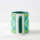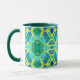 Mugg i ett färgämne mönster i nyanser av koboltblått, grönt och gult med akvaribakgrund/bakgrund av grönt