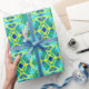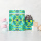 Omslagning papper i ett färgämne mönster i koboltblått, grönt och gult med akvaribakgrund/baksida i grönt