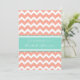 Aqua Coral Chevron Inbjudningskort för möhippan-ko