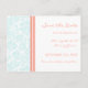 Aqua Coral Damask Spara datum Bröllopskort Meddelande Vykort
