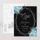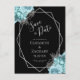 Aqua Floral Silver Geo Frame Black Save the Date Vykort