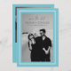 Modern bröllop spara datum-kort med en enkel och elegant design med information om ditt favoritfoto på lodrät, inuti en dubbla gräns. Temat färg är akvarium/turkos/teal och kan ändras i designredigeringsgruppen verktyg. Den ljusa paletten från färg gör den här utformningen underbar för ett tropiskt bröllop eller ett badbröllop på vår eller sommaren.