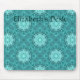 Lägg till ditt namn eller text i den här vackra musknappen med en söt detaljerad fraactal kaleidoskop på den i skuggor av akvblått och teal. Det har nästan den där vatteneffekten som simmar bassäng.