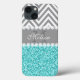 GIRLY MODERN UTTRYCKT AQUA BLUE GLITTER (TRYCKT FOTOEFFEKT) MED GRÅTT OCH VITE CHEVRON MÖNSTER, MONOGRAMMED DITT NAMN, INLEDANDE ELLER MONOGRAM PÅ GRÅTT RAND ELLER BAND MED GRÄNS AV TRYCKT VITDIAMONDER. TRENDIG, CHIC, COOLA, UTKONSTRUKTION FÖR HENNE, TRENDSETTER, FASHIONISTA. Utformning av Elke Clarke© för galleriet i Monogram