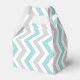 En modern blek pastel aqua blue grått och white chevron rand, mönstrad, stripe bröllop design. Lägg enkelt till briden och triummorna namn i textmallarna.