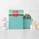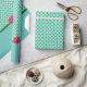 Ett flerfunktionsemballage pappert med fast akvaband och akva, grönt och vitt kvadratiskt polka dots på den andra. Har kontakt med grönt rand och rosa ros. Multi-us är perfekt för att matcha paket med olika utseende från den här enda presentfigursättningen. Använda bara den fasta delen, använda hela mönster, placera ro på sidan eller centrera den på ett litet paket...så många alternativ. Roligt för bröllop, möhippor, babyduschar eller födelsedagar.