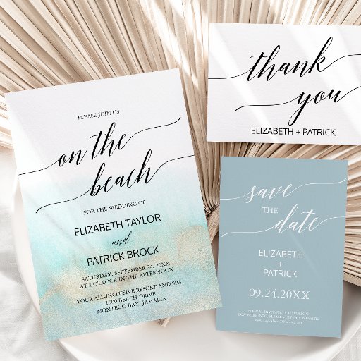 Aqua and Gold Watercolor Beach Wedding CollectionDesignad av Miriam Kokolo