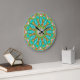 Aqua Guld Groovy Fractal Gems Peace Mandala Stor Klocka