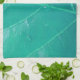 Abstrakten på köket är ett originalfoto av ZoeSPEAK på en havsdruva löv efter en ljusdusch. Några regndroppar kan ses i stängningsfotot, som visar venerna på löv skapar parallella linjära mönster diagonalt över den tonade vattenutformningen.