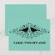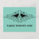 Söt och enkelt Love Bird Swirls Bordsnummer Postcard med silhuettes av ett par vita fåglar och kaskader av elegant snurrar runt på en turkobakgrund. Det här moderna kortet för bordsnummer är enkelt att anpassa med rätt bordsnummer. Klicka på Anpassa om du vill ha fler anpassningsalternativ.