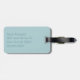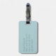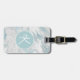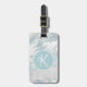Elegant bagagetapp i vit och akvblåmarad mönster. Ett textområde i akvamarincirkeln, mitten i märkrn, har ett enda vitt skriptmonogram. Baksidan görs i fast akvamarin med anpassningsbar teal text. Anpassa monogrammet och texten från brev, för dig själv eller som en underbar presentidé för henne.