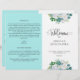 Eleganten quinceañera-programmet har en fantastisk handmålad, delikat blomma och löv i en kombination av vita, akvariga, turkos, blek blå och grönt. Använda av modern information om kalligrafi. Aqua-bakgrunden färg på lämnat fram- och baksida, vilket gång-program är hopfogat, kommer att bli insidan till lämnat och baksidan. Anpassa programmet på båda sidor och lägg till all information eller alla meddelanden du vill ha. Finns även på spanska. Obs! Det här programmet kommer att bli platt och det krävs att det viks ner i mitten för att samlas. Standardvärdesprogrammet rekommenderas. För att rengöra ett veck kanske du vill använda en billig benmapp verktyg, som finns i de flesta hantverksbutiker.