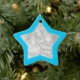 Lägg till din egen lilla stjärna i detta aqua ram på ett stjärnformat prydnadsämne. Det finns plats på baksidan för mer information. Skapa en keepy från en familjerester.