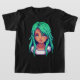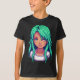 En pulserande pixelgrafik porträtt med en ung karaktär med långa, flytande akvatiska gröntar, mjukt teal ögon och ett serenuttryck. Utformningen innehåller mjuka, skarpa toner för huden, som på ett utmärkt sätt kontrasterar med det skarpa, dynamiska håret. Subjekt bär en vit topplapp som förstärker deras naturliga och lugn vibe. Stil har en eterisk, annars världsskarp design som skapar den lämplig för fantasi eller spelinställningar.