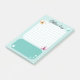 Sött flickaktigt klisterblock i ljust turkos med ett rutmönster, hjärtan, stjärnor och fjärilar. Personliggör med ditt namn!
