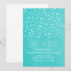 Söt och vismisk Starry Night Spara datum meddelande i turkos med en papper bakgrund med ett utseende med kaskader av söta och små stjärnor. Den här roligtens stjärntema sparar datumet inbjudan är perfekt för att tillkännage en underbar sommarkväll i bröllop. Denna utformning är också perfekt för en astronomi under temat bröllop, kanske på ett planetarium. Enkel att anpassa, lägg bara till din egen text i den fält som tillhandahålls. Klicka på Anpassa om du vill söka efter fler anpassningsalternativ.