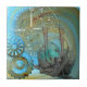 Fantasysk digital grafik har en snigel-formad Steampunk-tidsresa maskin med abstrakt akvaribakgrund
