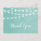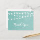Chicens moderna sommar-bröllop är ett tack för att du har kortdesignat med en enkel elegant med glanssträng ljus som hänger över toppen och en klassblandning av modernt och kalligrafiskt skript typsnitt på en utskriven bild av vattenfärgen struktur. En enkel och snyggt, perfekt till sommaren! Klicka på knappen CUSTOMIZE IT för att anpassa typsnitt, flytta texten och skapa din egen unika inbjudan av typen one-of-a-natura-modell.