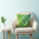Aqua Tan Black on Lime Green Diagonal Mosaic Motif Kudde
