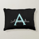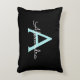Black and Aqua Teal Blue Script Monogram Namn och Initial Pillow. Kudden gör perfekten söt 16 födelsedag, bröllop, möhippa, babydusch eller bachelorette-gåva till någon som dekorerar hennes rum i ro guld.