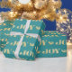 Aqua & Teal Christmas Wrapping Paper with Gold Acc Presentpapper
