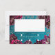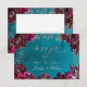 Ett akvafettblåsfärgat hevelfärgat bröllopsinbjudan för OSA av returbrev per post med tre alternativ för måltider på kortets baksida.