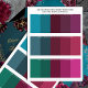 Tre tealblått, framväxande grönt med burgundsjevel-färgpaletter bröllop färg för bröllop klänning, dekor och inbjudningar. Tre olika paletter från färg sträcker sig från vattentblått och nödblått grönt med rött rosa i burgundött på ett kort som du kan bära med dig för att du enkelt ska kunna jämföra flödet och kontinuiteten i färger och huvudstaden färg när du väljer material och tillbehör till bröllop.
