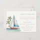 Aqua Teal Sailboat Handflatan Sjölandskap bröllops Tilläggskort