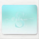 Aqua Teal Shimmer Gnistra Girly Monogram Mouse Pad Musmatta