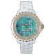 Aqua Tile & Rhinestone Watch by Julie Everhart Armbandsur