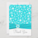 Detta festliga turkosa och vita snöflingor tackkort har ett FALSKT akvablått band och snöfling medaljong på det. Det matchar bröllopsinbjudan som visas nedan. Det finns också ett litet tackkort i gratulationskortstil som visas nedan, om du föredrar det. Om du behöver andra matchande föremål i denna design, vänligen maila din förfrågan till niteowlstudio@gmail.com.