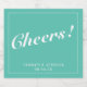 Söt, modernt, minimalistiskt och trendig bröllop flaska har en akvblått bakgrund (Pantones plocka "Cascade" från 2022) med textblock för vitt anpassade i modernt typsnitt
