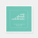 Söt, modern, minimalistisk och trendig bröllop-napkin för pappra party har en akvblått bakgrund (Pantones plocka 2022 i färg "Cascade") med textblock för vitt anpassade i modern typsnitt