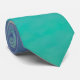 A tie with a beautiful photograph. A scenic tropical beach with aquamarine water and a white sandy beach with a lush forest in the back.