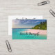 Business cards with a beautiful photograph. A scenic tropical beach with aquamarine water and a white sandy beach with a lush forest in the back. A solitary umbrella available for those who love seclusion.