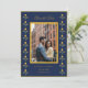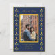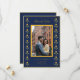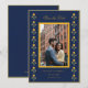 Söta gula och marinblå Spara datum-kort med aquarell sammetstöm kant med parfoto.