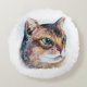 Das Bild zeigt ein Porträt eines rotbraunen gestreiften Katers mit leuchtend grünen Augen, gemalt in Aquarelltechnik.