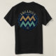 En t-shirt-design med Aquarius-tecknet i ett fet, färglöst kontur, omgiven av snurrande astrologiska symboler. Utformningen firar Aquarianernas nyskapande och oberoende, med dynamiskt färg och dynamiskt inslag som fångar luft-tecknets energi.