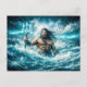 Aquarius Zodiac with Trident Warrior in Stormy Oce Vykort