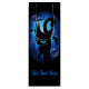 Surreal Black Cat flytta grund på en djup surreal blue Ocean, omgiven av hajar, fiskar, alger, bubblor, som en magisk mörk dröm. Digital Art Copyright BluedarkArt.
