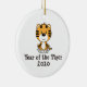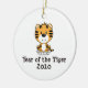 Fira födelsen av bebiset bördig 2010 med detta förtjusande kinesiska zodiacår av tigerprydnaden. Personifiera den med bebis namn på baksidaen.