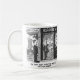 Skämt tecknad för bankstängning. Lustigt illustrerad tecknad visar en bank som stänger och en förbipasserande frågar om den bara är för natten eller för alltid. Tecknad för bankstängning. Bankarbetets gåva mugg.