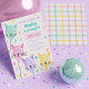 Denna Är Du Kattunge Mig Söt Liten Katt Födelsedag Regnbåge design har en grupp söta kattungansikten ballonger omgivna av färgglada konfetti i rosa, lila och andra pastelljus. Baksidan visar ett mönster av färgglada ränder. Denna design är perfekt för en flickas barnkalas. Du kan anpassa alla detaljer för att matcha din speciella dag. Se hela matchande kollektionen!