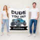 Föreställ dig en dynamisk bakgrund av orustiska sand, där fet svart typografi fångar din uppmärksamhet. Den övertygande frasen "DUDE, DIG IN?" står på, framhävs av en lekfull baby blue skugga som gör att ord går till liv. Det är en inbjudan du inte kan motstå!