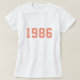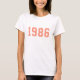 Snyggt, trendig "1986" anpassningsbar födelseår t-shirt i modern minimalistisk fet blockhögskola stil typografi i korallets rosa. Perfektens födelsedagspresent för att fira ditt födelseår, din etablering och vintage som lätt kan vara personlig med ditt eget år.