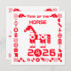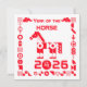 Djärv geometrisk röd hästdesign inspirerad av kinesisk zodiak och festlig symbolik.