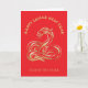 Fira ormens år med det här vackert designade nyårskortet. Detta kort symboliserar visdom, omvandling och välstånd för det kommande året. Det har en graciös, konstnärlig orm med färgning av guld på en sjudande röd bakgrund.